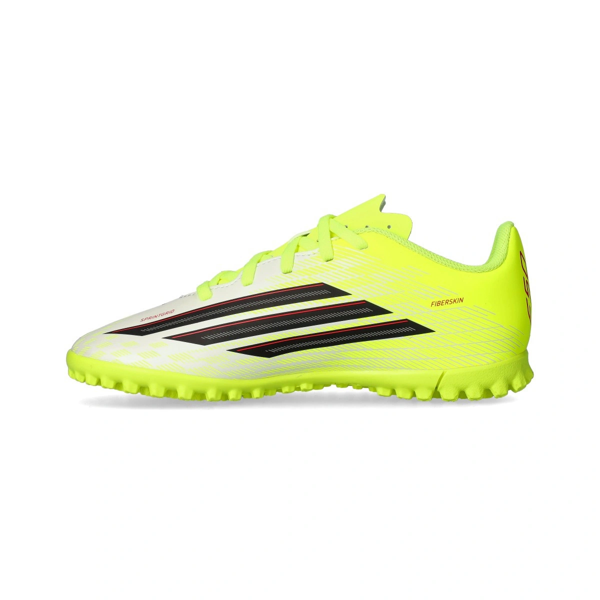 Scarpe da calcio per bambini F50 Club Turf della marca adidas e disponibili nella colorazione Team Solar Yellow-Core Black-Lucid Red. Di gamma base per moquette o campi in erba sintetica di seconda generazione.