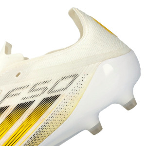 Scarpe F50 Elite AG Kings League della marca adidas e di colore bianco, nero e oro. Scarpe d'alta gamma per terreni in erba sintetica.