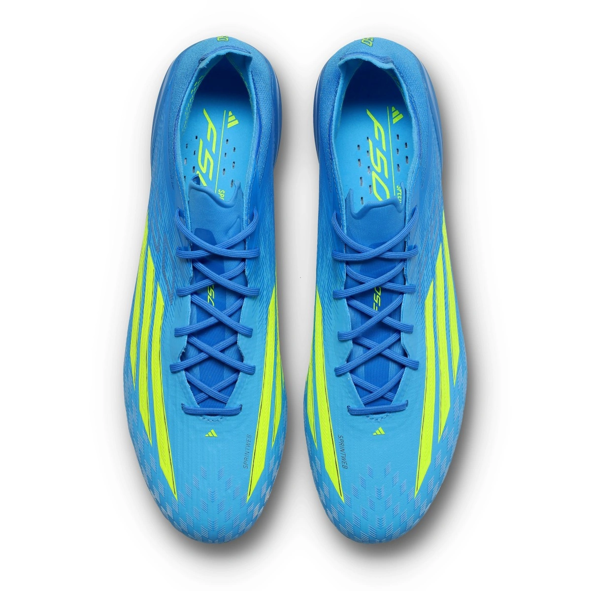 Scarpe da calcio F50 Elite FG della marca adidas e disponibili nella colorazione Lucid Ray Blue-Team Solar Yellow-Lucid Aqua. Con lacci, per campi in erba naturale.