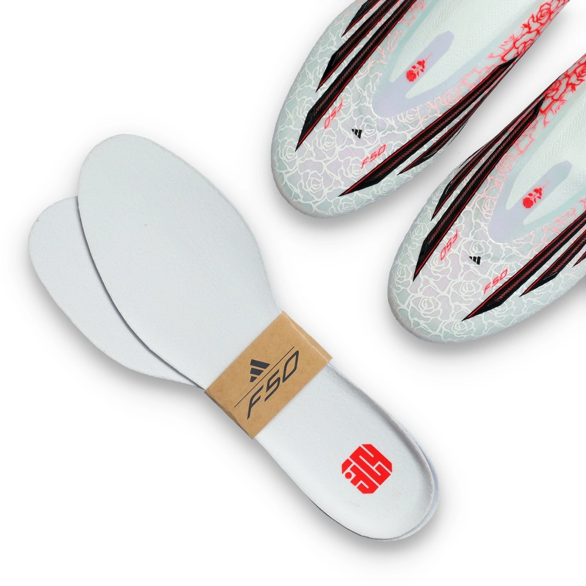 Il chassis delle nuove F50 è pensato per essere stabile durante le azioni ad alta velocità ottenendo un involucro più leggero della X. Upper prodotta col materiale sintetico Fibertouch che assicura un sostegno perfetto del piede alla scarpa, oltre al PrimeKnit sulla zona del collo del piede per evitare qualsiasi possibile distrazione.