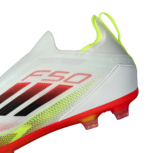 Scarpe da calcio F50 Elite LL FG della marca adidas. In filato da usare su campi in erba naturale asciutti o bagnati. Di gamma alta e disponibili nella colorazione White-Core Black-Solar Yellow