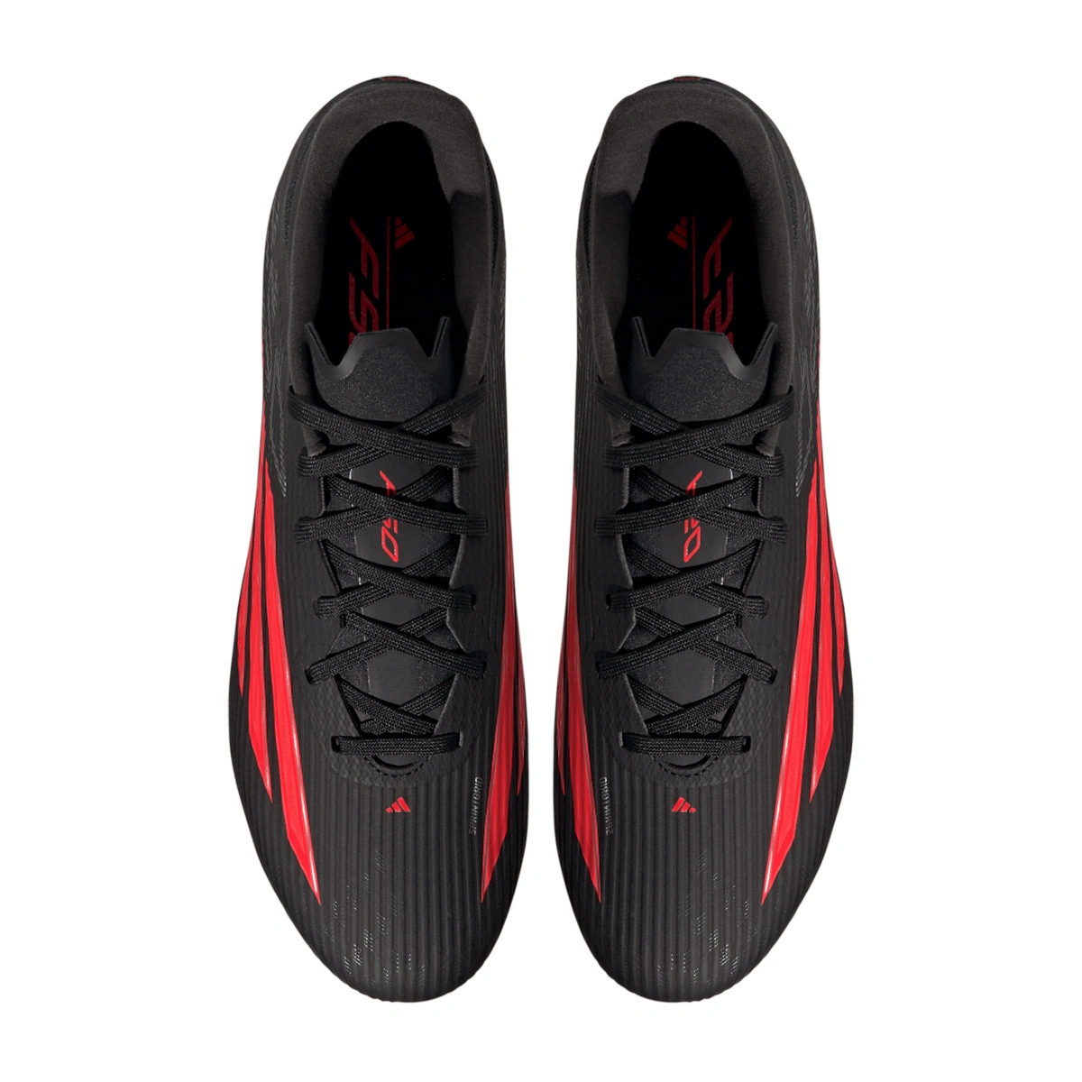 Scarpe da calcio F50 League SG della marca adidas e disponibili nella colorazione Core Black-Lucid Red-Core Black per terreni bagnati o molto fangosi.