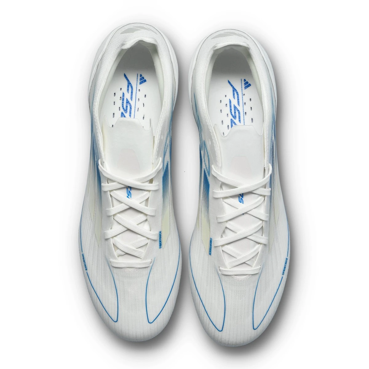 Scarpe da calcio F50 Pro FG della marca adidas e disponibili nella colorazione White-Pearl Met-White.