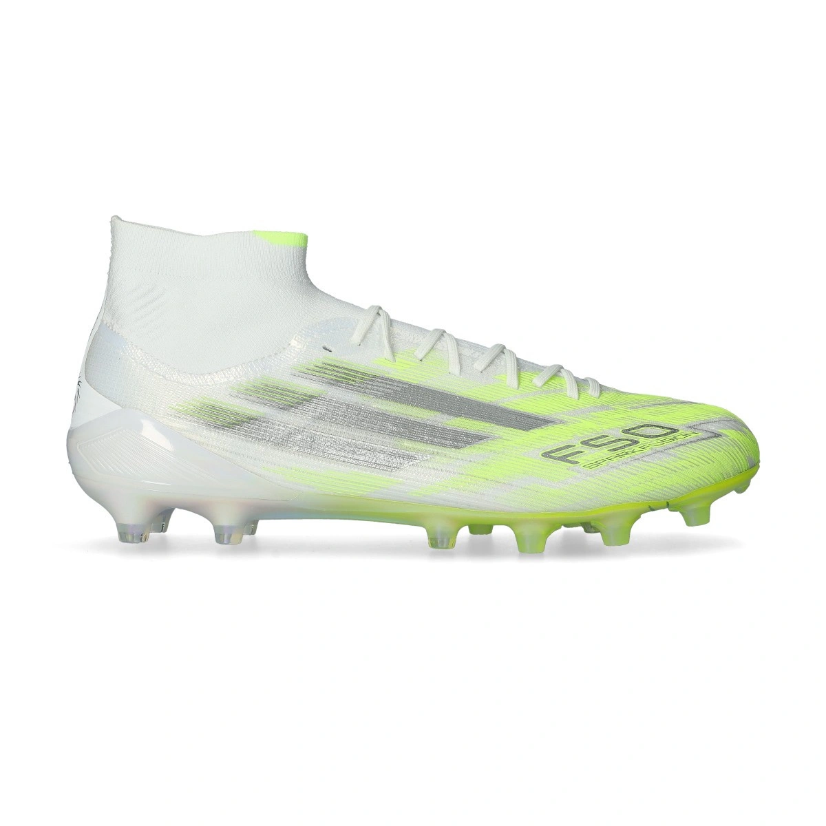Il chassis delle nuove F50 è pensato per essere stabile durante le azioni ad alta velocità ottenendo un involucro più leggero della X. Upper prodotta col materiale sintetico Fibertouch che assicura un sostegno perfetto del piede alla scarpa, oltre al PrimeKnit sulla zona del collo del piede per evitare qualsiasi possibile distrazione.
