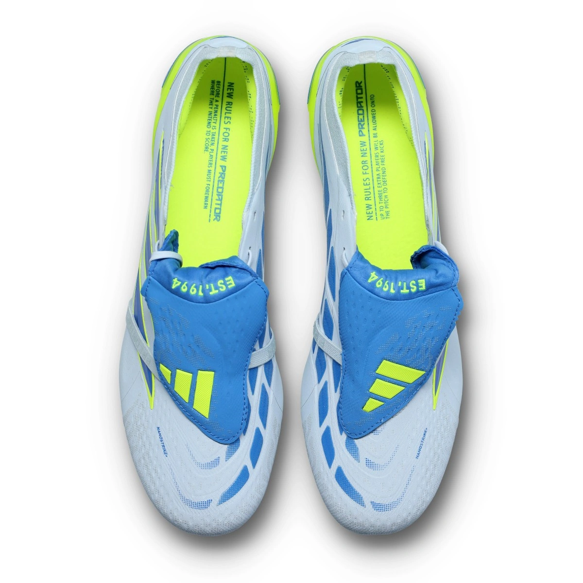 Scarpe da calcio adidas Predator Elite FT FG. Sintetiche, con lacci, da usare su campi in erba naturale. D'alta gamma e disponibili nella colorazione Crystal Sky-Ray Blue-Team Solar Yellow.
