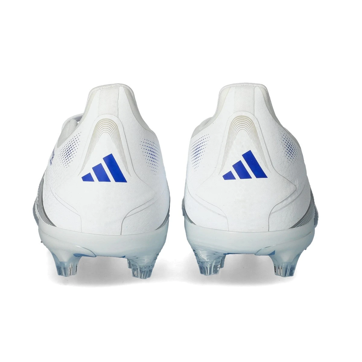 Scarpe da calcio adidas per bambini Predator Elite L FG. Sintetiche con lacci, da usare su campi in erba naturale. D'alta gamma e disponibili nella colorazione Ftwr White-Silver Met-Bright Royal.