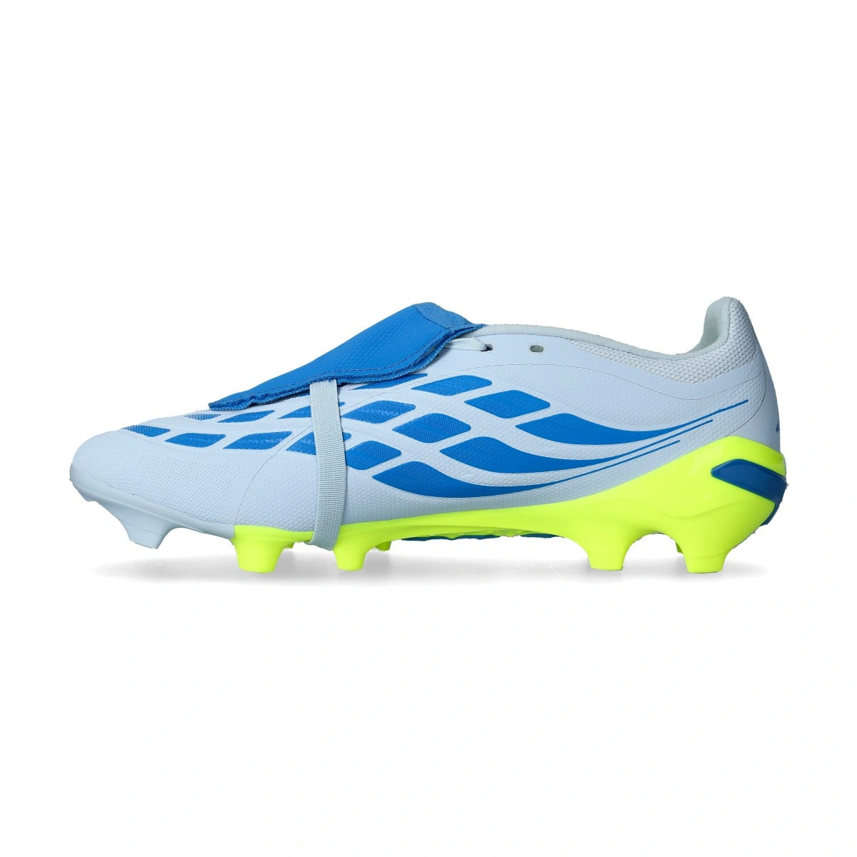 Scarpe da calcio per adulti adidas Predator League FT FG. Sintetiche, con lacci, da usare su campi in erba naturale. Di gamma base e disponibili nella colorazione Crystal Sky-Ray Blue-Team Solar Yellow.