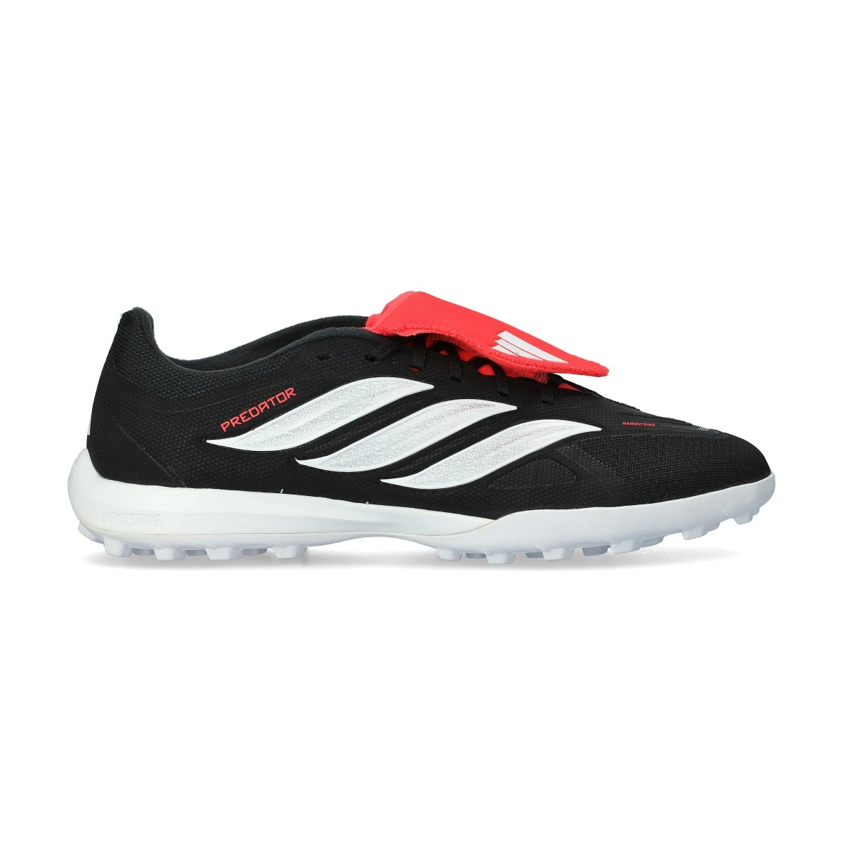 Struttura leggera con contrafforte esterno sul tallone per una aderenza e una stabilità dinamica con tecnologia STRIKEFRAME. Una piastra completa e leggera. I tacchetti a forma di zanna aumentano il grip e l'agilità rotazionale, permettendo condizioni ottimali per segnare il gol decisivo.