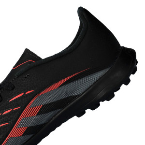 Scarpe da calcio adidas per bambini Predator League L Turf. Sintetiche con lacci da usare su campi in erba sintetica o moquette. D'alta gamma e disponibili nella colorazione Core Black-Grey Four-Lucid Red.