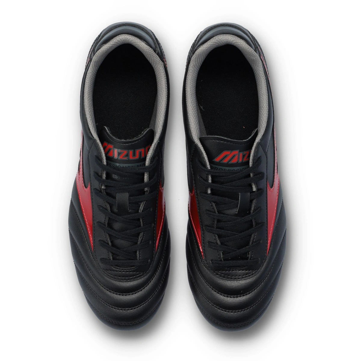 Scarpe da calcio Mizuno Morelia II Club FG. Modello per adulti di colore rosso e nero. Di gamma base, adatte a campi in erba naturale.