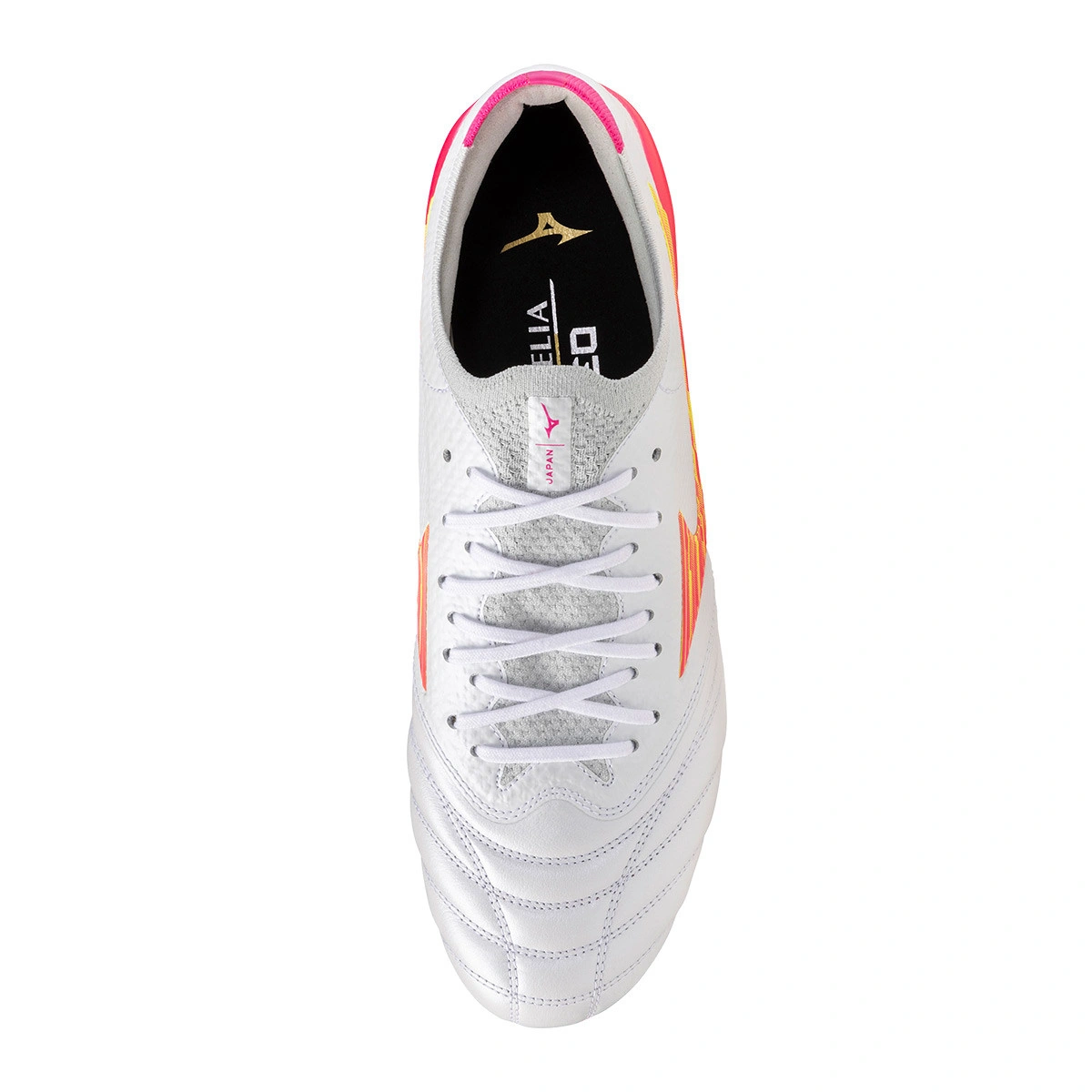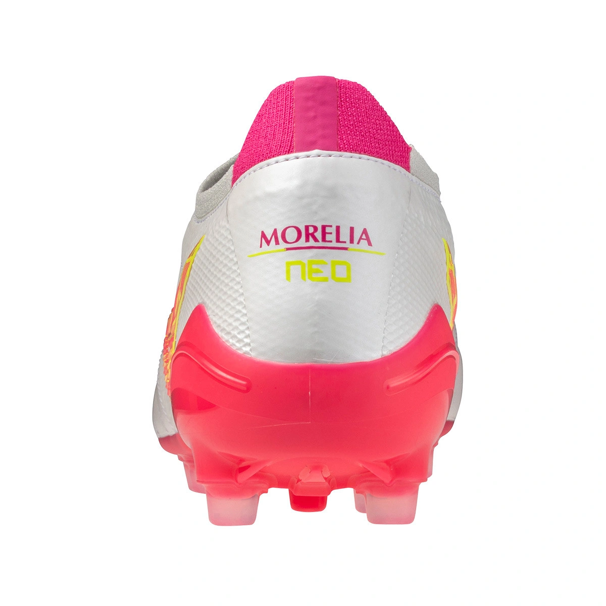 Scarpe da calcio di pelle di canguro Mizuno Morelia Neo IV Beta Made In Japan AG per campi in erba sintetica e nella colorazione Pink-White.