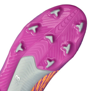 Scarpe da calcio per bambini Furon Team FG V8 della marca New Balance. Da usare su campi in erba naturale. D'alta gamma e di colore viola. Per giocatori veloci.