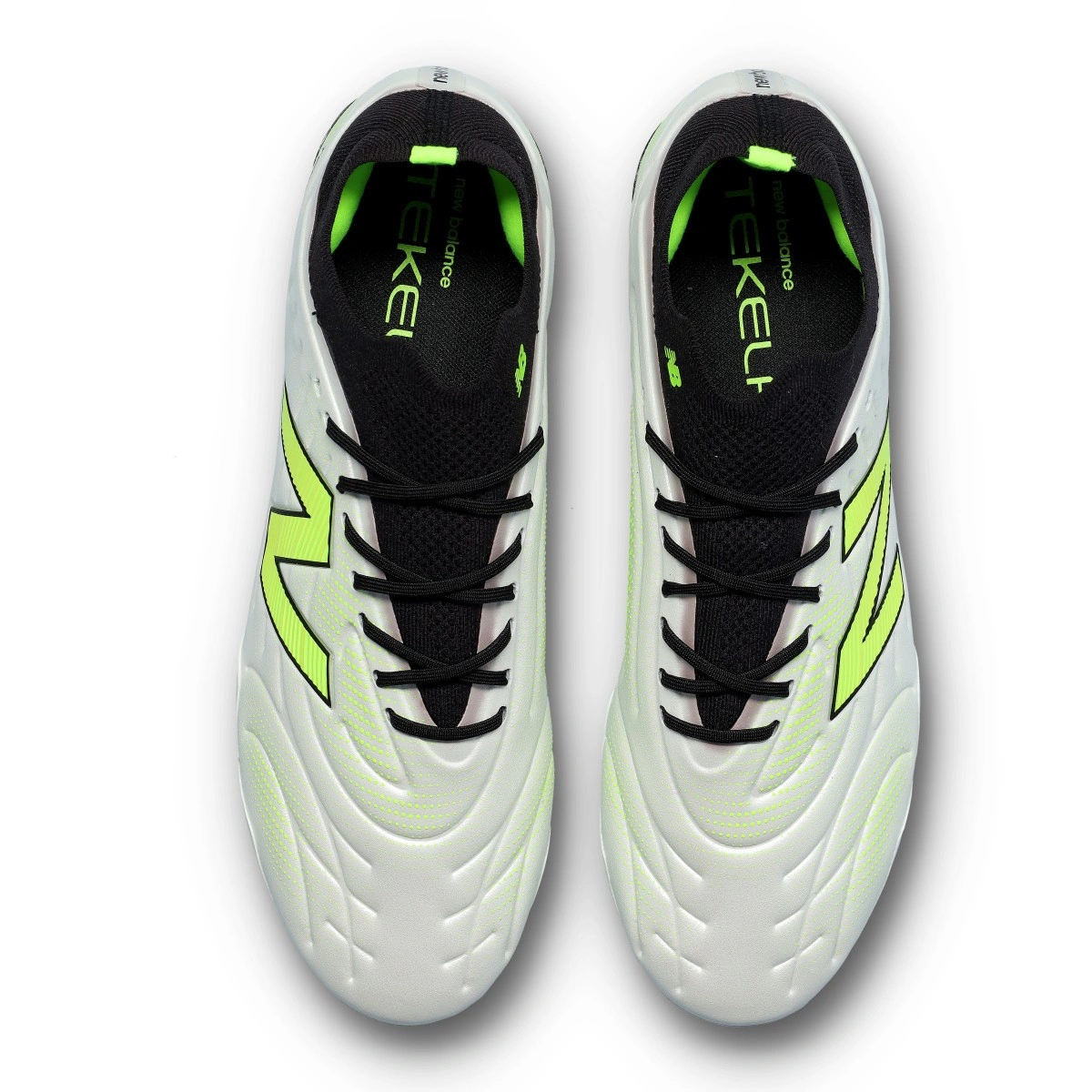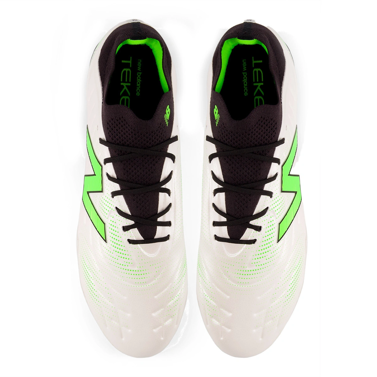 Scarpe da calcio Tekela Pro Low MG V5 della marca New Balance per adulti. Di colore bianco e adatte a campi in erba naturale.