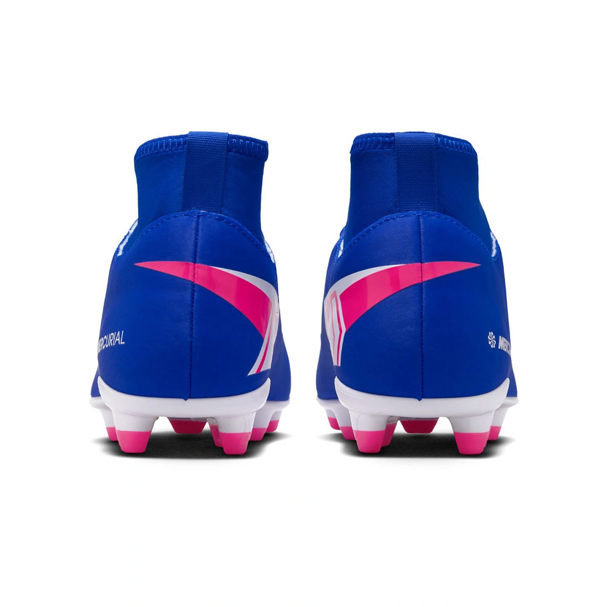 Scarpe da calcio per bambini Nike Air Zoom Mercurial Superfly 10 FG/MG Academy. In filato, da usare su campi in erba naturale o sintetica di seconda generazione. Scarpe da calcio di gamma base e disponibili nella colorazione Racer Blue-White.