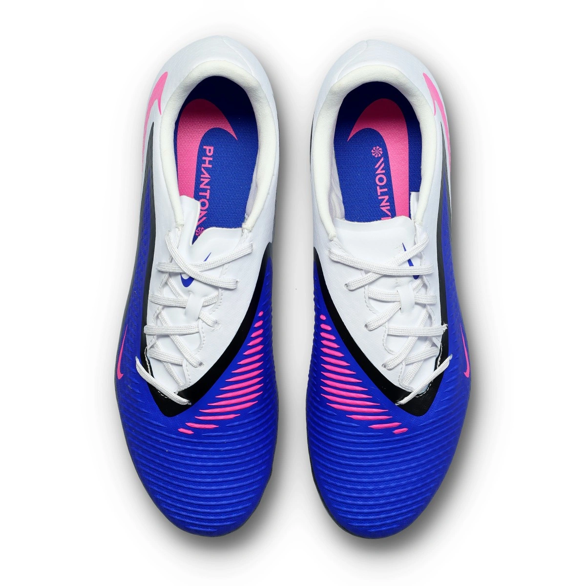 Scarpa da calcio Nike Phantom 6 Low Academy FG/MG. In filato, senza calzino, da utilizzare su campi in erba naturale asciutta o sintetica di prima generazione. Di gamma alta per giocatori di controllo e precisione, disponibili nella colorazione Racer Blue-Pink Blast-White.