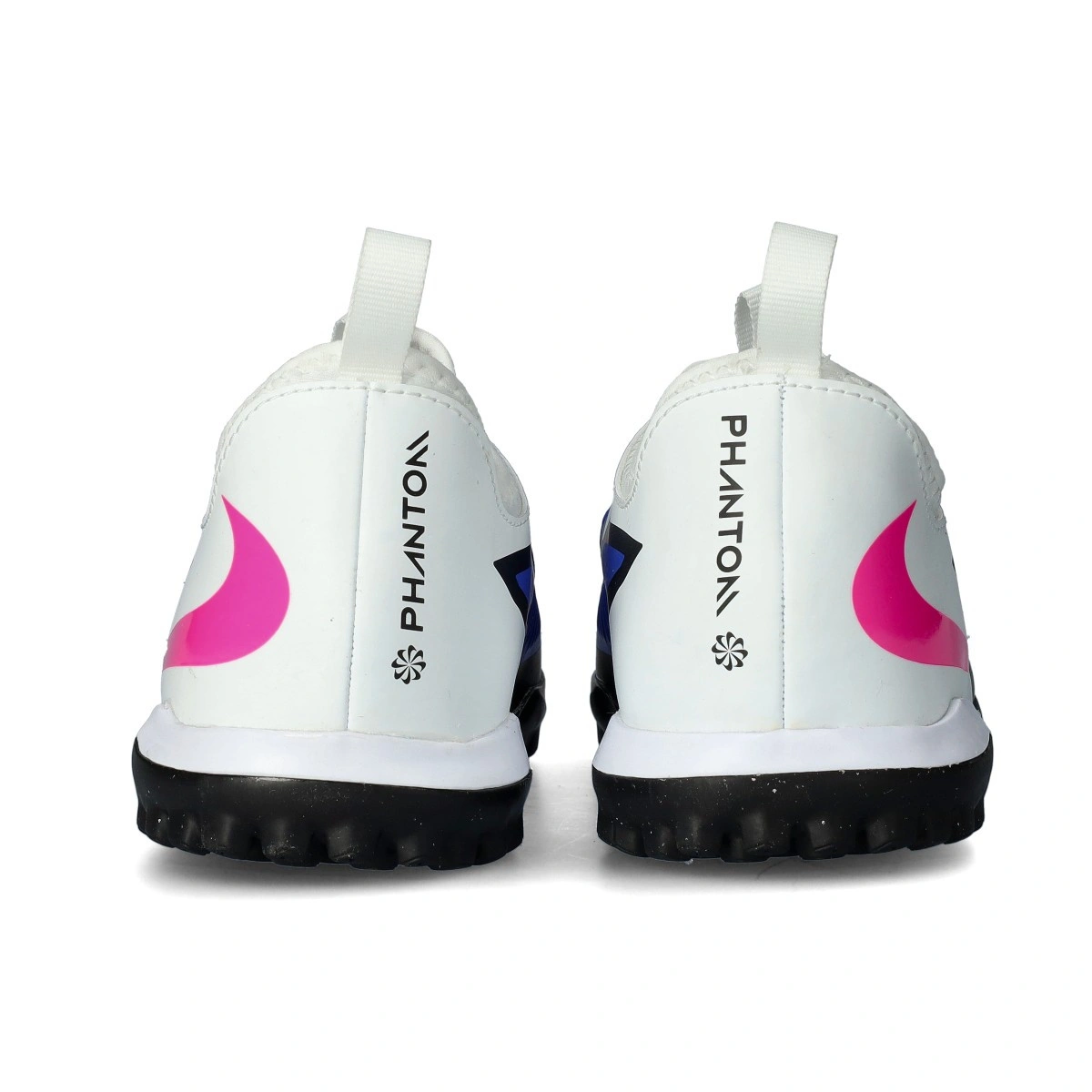 Scarpe da calcio per bambini Nike Phantom 6 Low Academy Turf. In filato, senza calzino, da usare su campi in moquette o erba sintetica. Di gamma media, per giocatori che puntano su controllo e precisione, disponibili nella colorazione Racer Blue-Pink Blast-White.