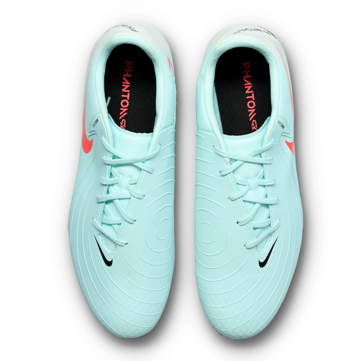 Scarpe da calcio per adulti Phantom GX II Academy SG-Pro Anti-Clog. In filato da usare su campi in erba naturale bagnata. Di gamma base, adatte a giocatori che puntano sul controllo e sulla precisione, e disponibili nella colorazione Mtlc Silver-Black-Volt.