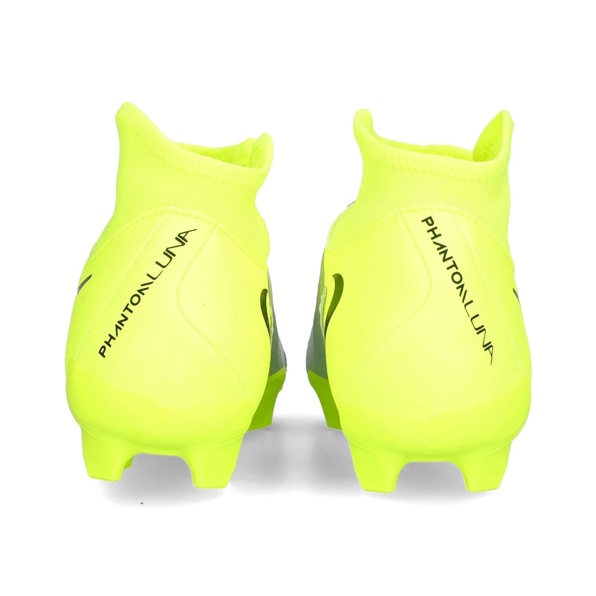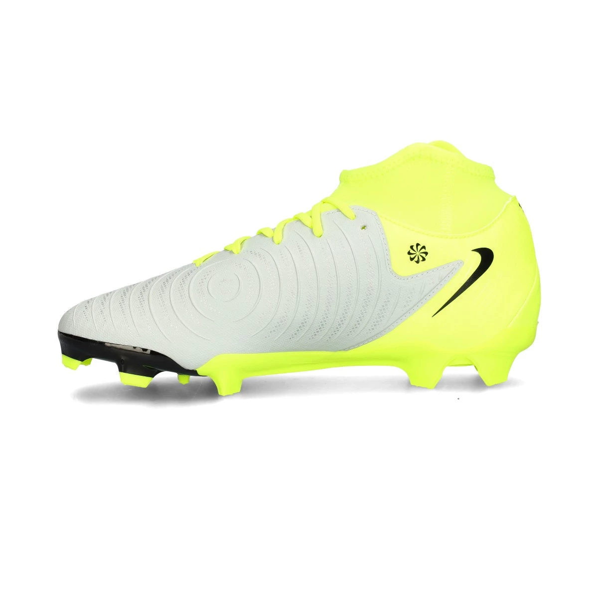 Scarpe da calcio Nike Phantom Luna II Academy FG/MG. In filato con calzino, da usare su campi in erba naturale asciutta o bagnata o erba sintetica. Di gamma bassa per giocatori che puntano su controllo e precisione e disponibili nella colorazione Mtlc Silver-Black-Volt.