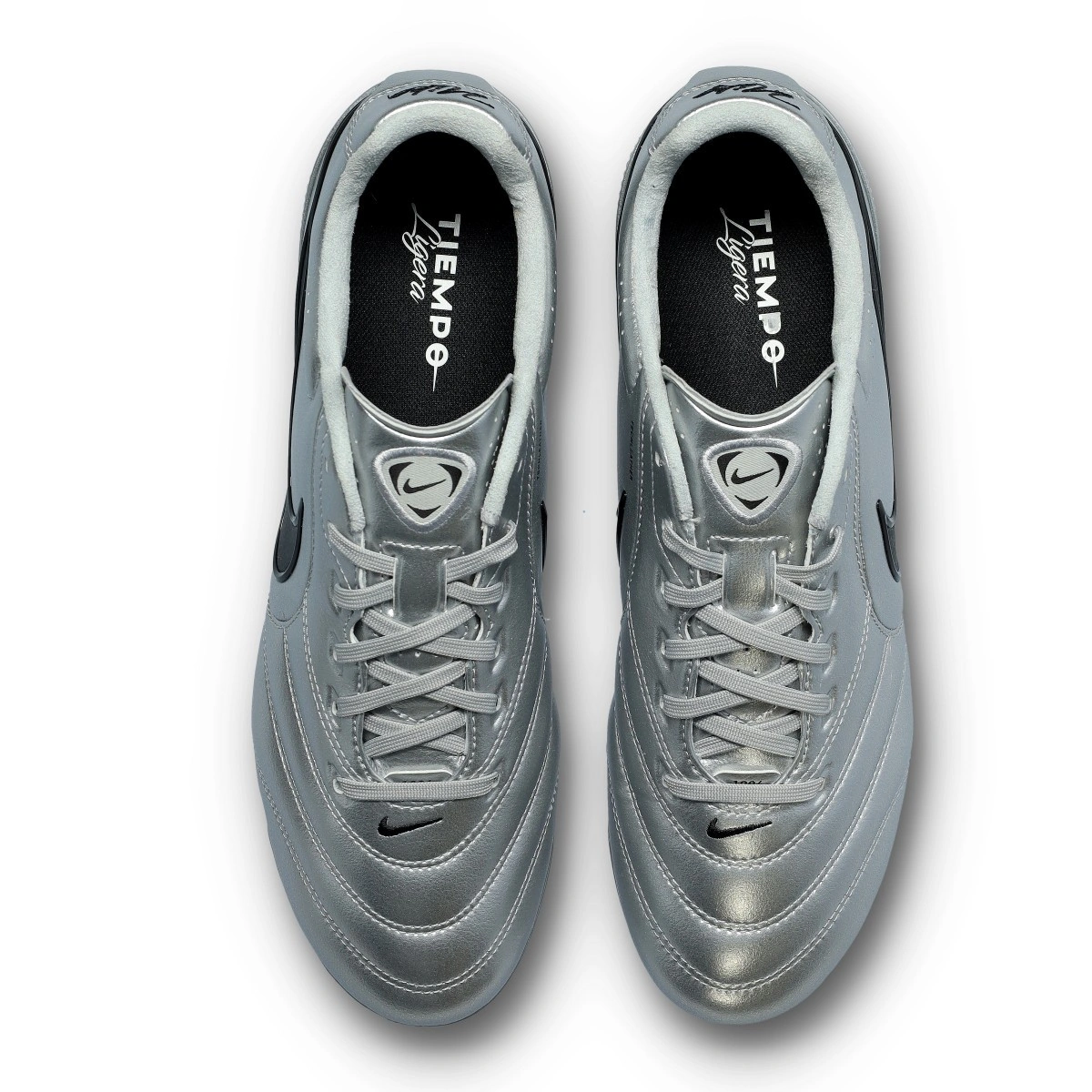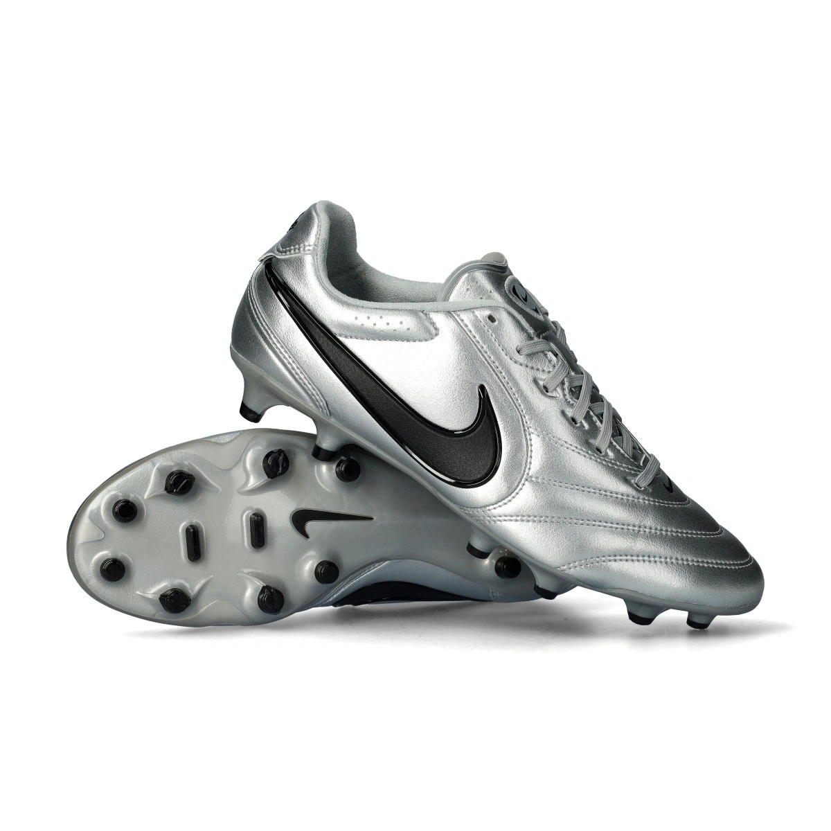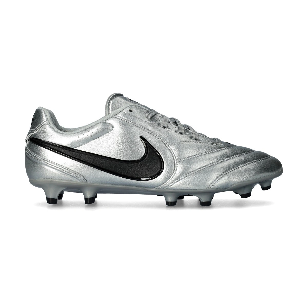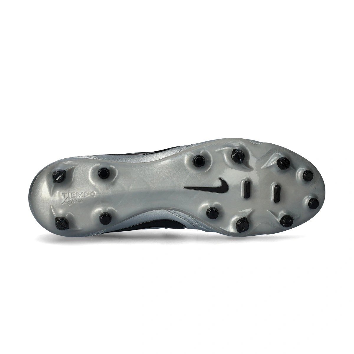 Scarpe da calcio per adulti Nike Tiempo Ligera Pro FG. Da usare su campi in erba naturale. Di gamma media e disponibili nella colorazione Metallic Silver-Black.
