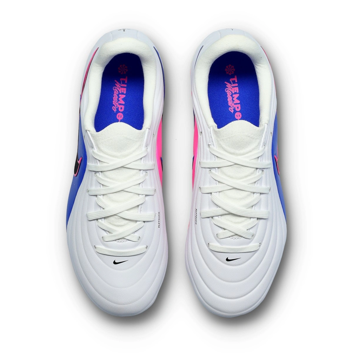 Scarpe da calcio per bambini Nike Tiempo Maestro Academy FG/MG. Da usare anche su campi in erba naturale. Di gamma base e disponibili nella colorazione White-Black-Racer Blue-Pink Blast.