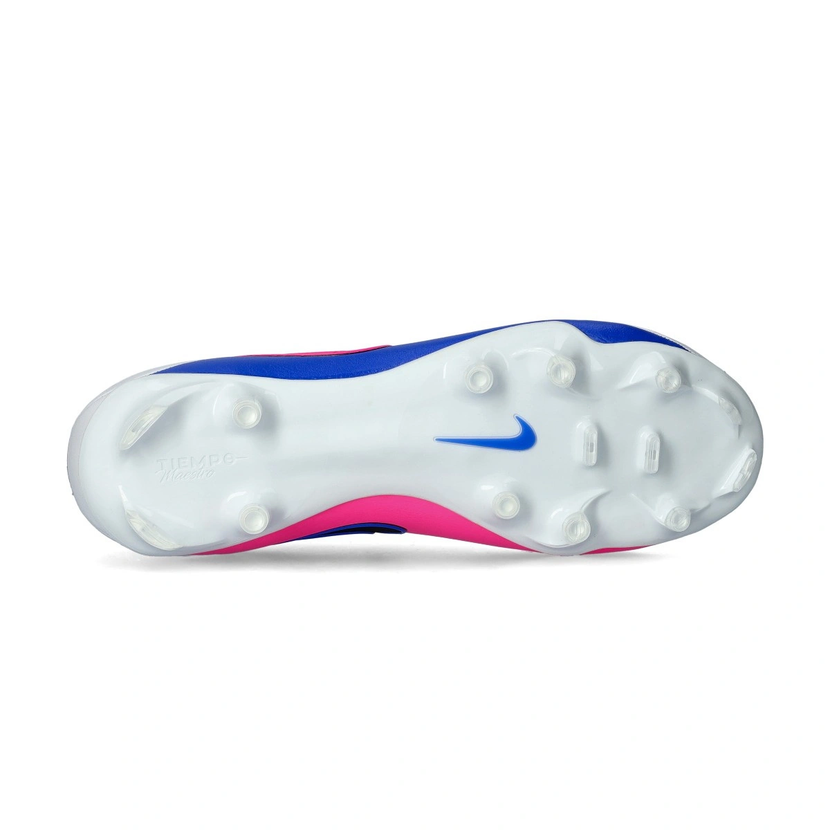 Scarpe da calcio Nike Tiempo Maestro Academy FG/MG. Da usare anche su campi in erba naturale. Di gamma base e disponibili nella colorazione White-Black-Racer Blue-Pink Blast.