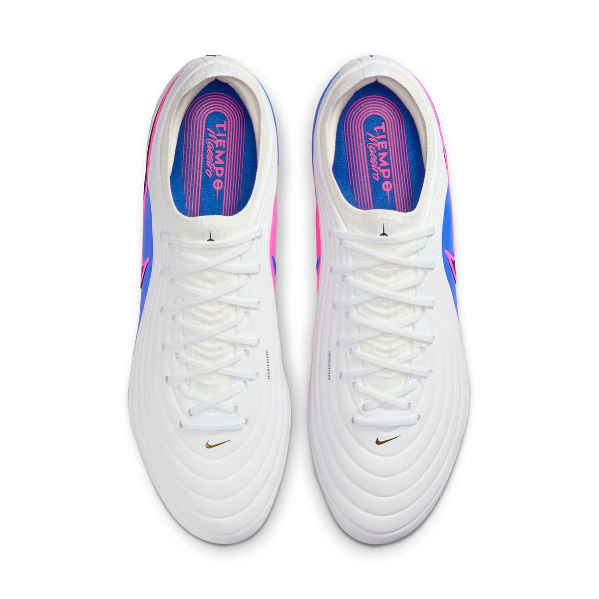 Scarpe da calcio Nike Tiempo Maestro Elite SG-Pro per adulti. Da usare su campi in erba naturale bagnata o molto fangosa. D'alta gamma e disponibili nella colorazione White-Black-Racer Blue-Pink Blast.