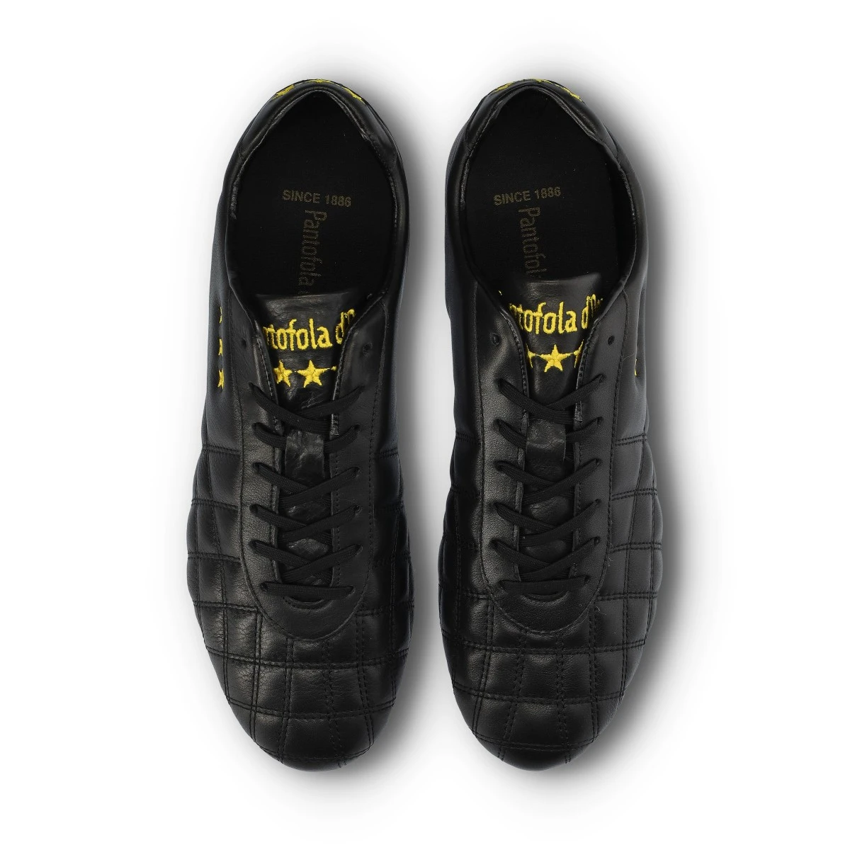 Scarpe da calcio Pantofola d'Oro Del Duca FG. In pelle perfetta per i terreni duri in erba naturale e sintetica. D'alta gamma e di colore nero.