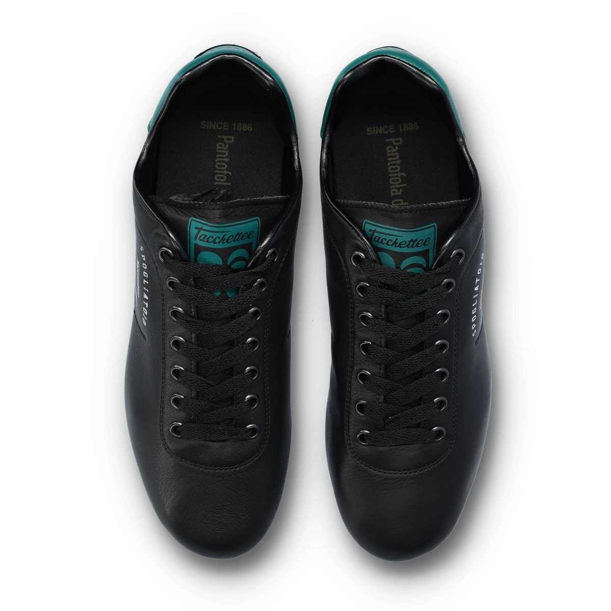 Scarpe da calcio Pantofola Lazzarini x Tacchettee FG/AG. In pelle, di colore nero, da utilizzare su campi in erba naturale e sintetica.