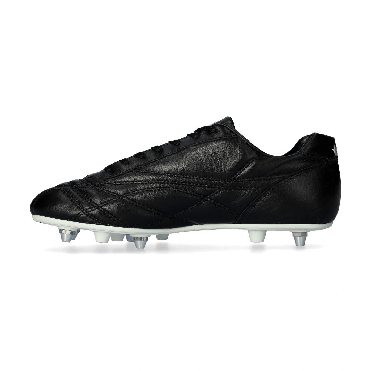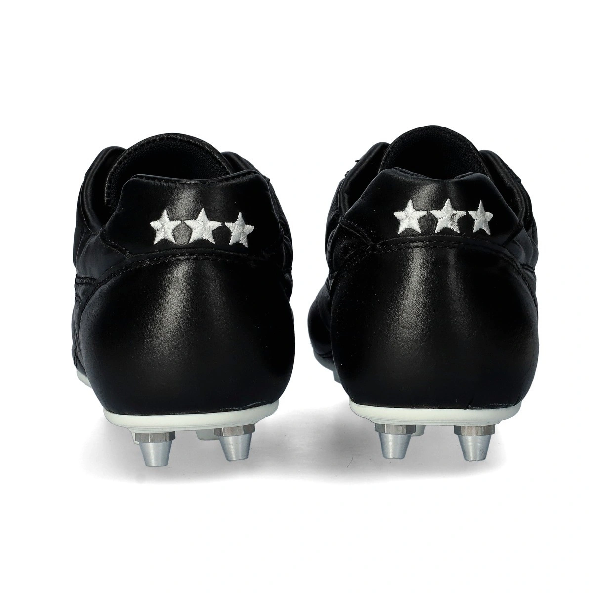 Le scarpe da calcio New Star Vitello SG Black della marca Pantofola d'Oro sono un vero gioiello per gli appassionati del calcio classico. Progettate per il giocatore adulto che cerca un tocco di eleganza e prestazioni in campo, queste scarpe appartengono alla gamma più alta del marchio.