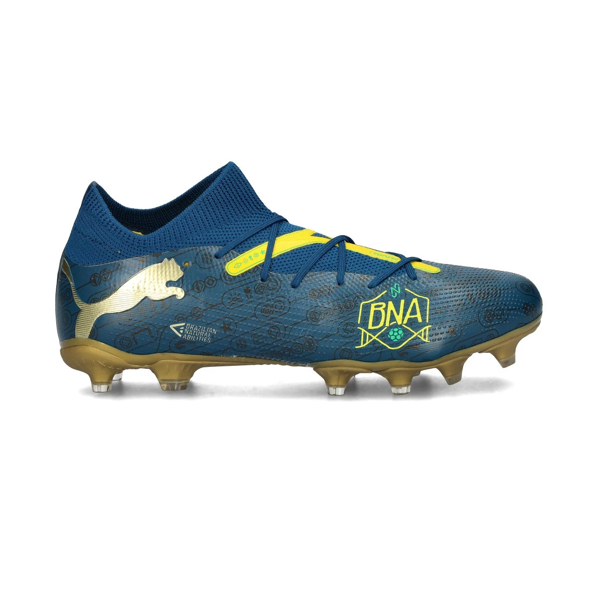 Una nuova uscita per la star brasiliana, Neymar Jr, firmata dal marchio "felino". Un design che rappresenta la cultura calcistica brasiliana riassunta nella scritta BNA: Brazilian Natural Abilities. Su tutta la tomaia si possono osservare dei dettagli che fanno riferimento alla comunità carioca, una delle culle del calcio. Allegria, sfrontatezza e squilibrio sono i suoi punti forti e Neymar li rappresenta perfettamente attraverso il suo stile di gioco.