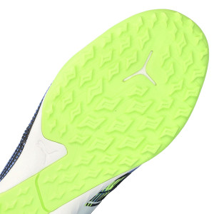 Scarpe da calcio Puma Future Match TT Turf. Sintetiche da usare su campi in erba artificiale e moquette. Di gamma media e disponibili nella colorazione Gray Skies-White-Fizzy Apple.