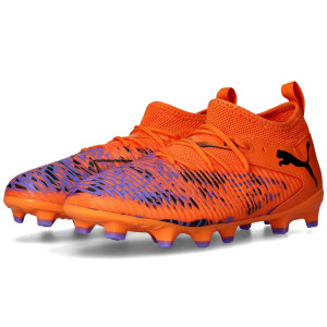 Scarpe da calcio per bambini Puma Future 8 Match FG/AG. Sintetiche, da utilizzare su campi in erba naturale e sintetica. Di gamma base e disponibili nella colorazione Orange Poppy-Black-Poison Pink.