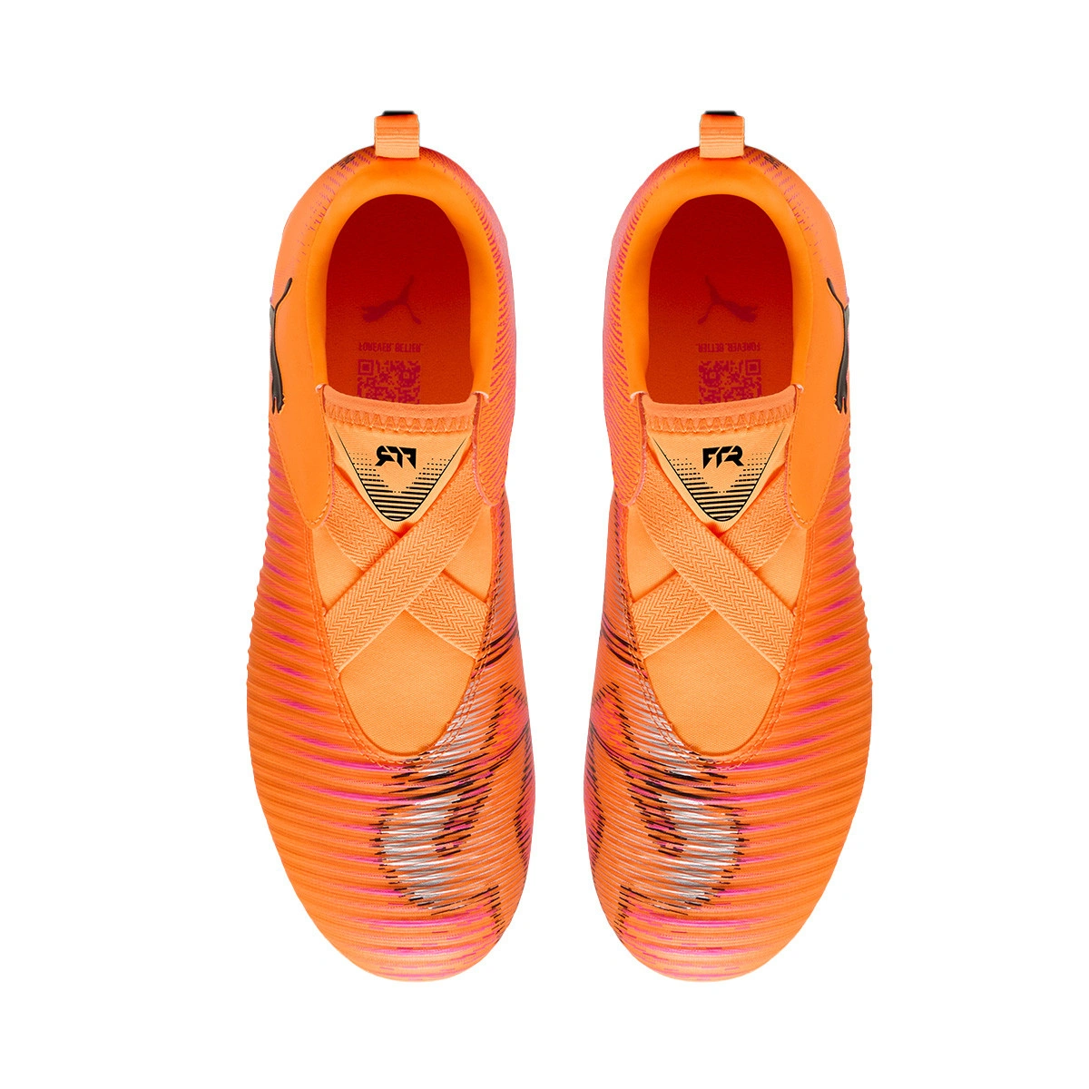 Scarpe da calcio Puma Future 8 Match LL FG/AG per bambini. Sintetiche, senza lacci, da usare su campi in erba naturale e artificiale. Di gamma basic, disponibili nella colorazione Heat Fire-Black-Ravish.
