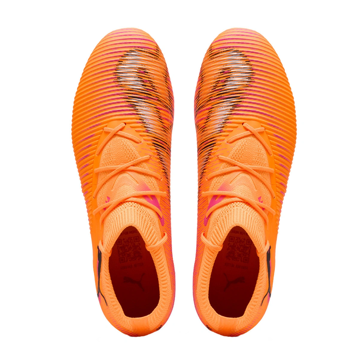 Scarpe da calcio Puma Future 8 Match MG per adulti. Sintetiche, da usare su campi in erba artificiale di prima generazione. Di gamma bassa, disponibili nella colorazione Heat Fire-Black-Ravish.