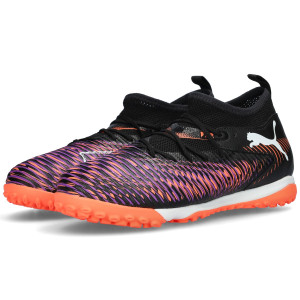 Scarpe da calcio per bambini Puma Future 8 Match Turf + Mid. Sintetiche, per campi in erba artificiale o moquette. Di gamma media e disponibili nella colorazione Black-White-Glowing Red.