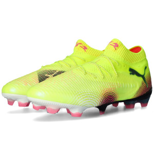 Scarpe da calcio Puma Future 8 Ultimate FG. In filato, da usare su campi in erba naturale asciutta. D'alta gamma e disponibili nella colorazione Yellow Alert-Puma Black-Sun Struck.