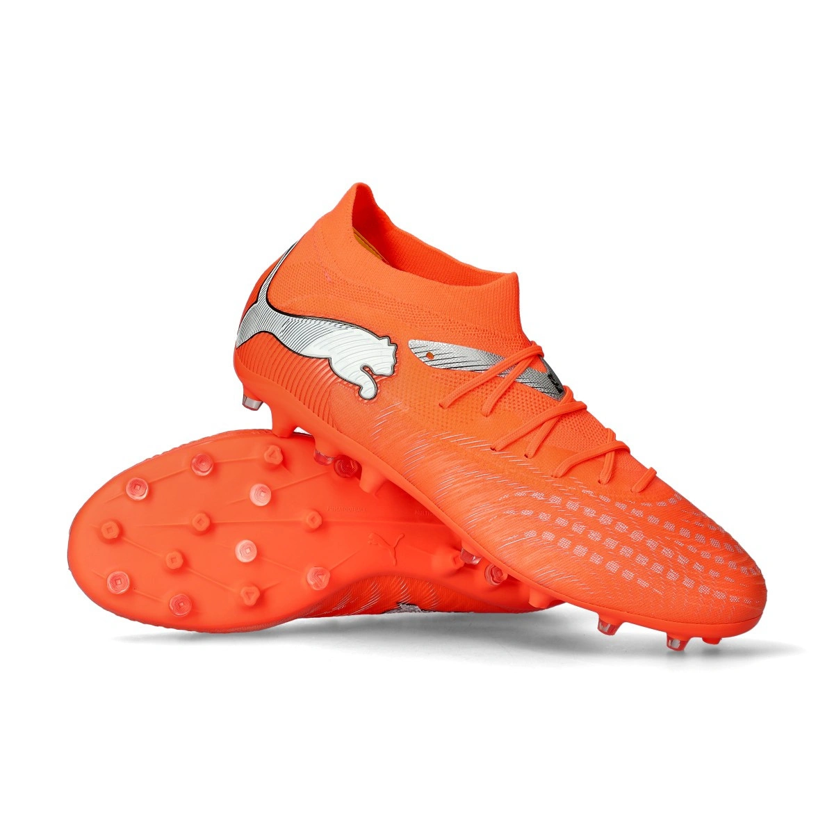 Scarpa da calcio Puma Future 9 Match MG per adulti. Sintetiche da utilizzare su campi in erba artificiale di prima generazione. Di gamma base e disponibili nella colorazione Puma Red-Puma White-Glowing Red-Puma Black.