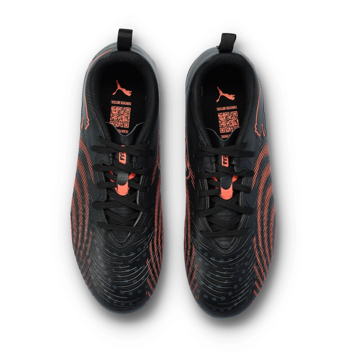 Scarpe da calcio Puma Future 9 Play FG/AG. Sintetiche, da utilizzare su campi in erba artificiale e naturale. Di gamma bassa e disponibili nella colorazione Puma Black-Glowing Red-Strong Gray.