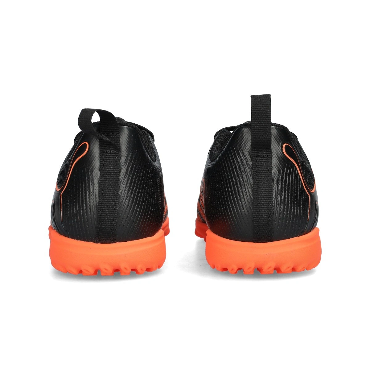 Scarpe da calcio per bambini Future 9 Play Turf. In microfibra sintetica, a strappo e da utilizzare su campi in moquette, erba artificiale, cemento o terra battuta. Di gamma base e disponibili nella colorazione Puma Black-Glowing Red-Strong Gray.
