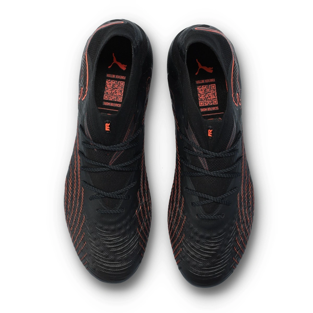 Scarpe da calcio Puma Future 9 Ultimate MxSG per adulti. In filato, da utilizzare su campi in erba naturale bagnata o molto fangosa. Di alta gamma e disponibile nella colorazione Puma Black-Glowing Red-Strong Gray.