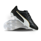 Scarpe da calcio per bambini Puma King 20 Play FG/AG. Scarpe sintetiche, da usare su campi in erba naturale e artificiale. Di gamma base e disponibili nella colorazione Puma Black-Puma White-Puma Gold.