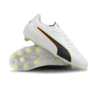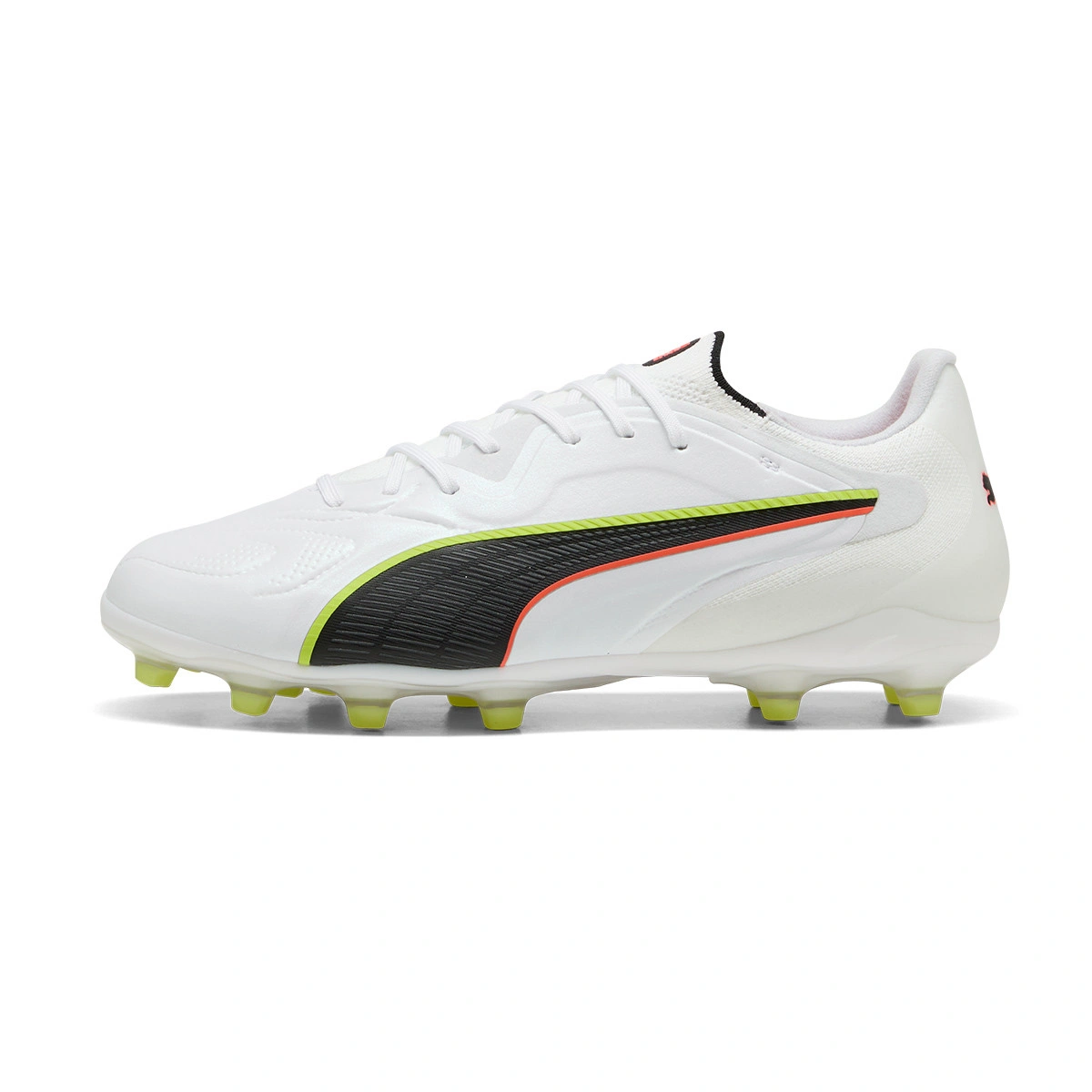 Scarpe da calcio per adulti King Pro 20 FG/AG. In pelle sintetica, da usare su campi in erba naturale e artificiale di ultima generazione. Di gamma media e disponibili nella colorazione White-Glowing Red-Yellow Alert.