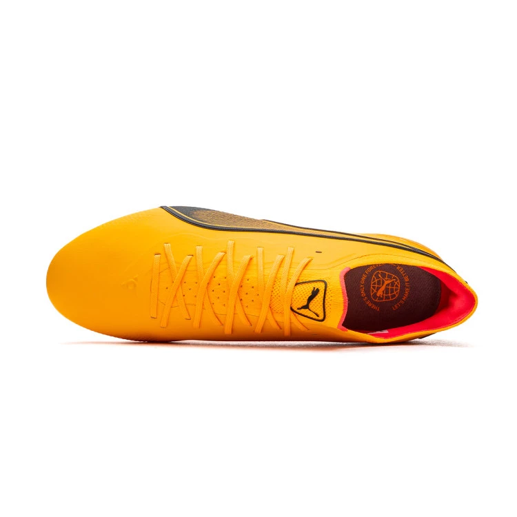 Scarpa Puma King Ultimate FG/AG disponibili nella colorazione Sun Stream-Black-Sunset Glow. Scarpa pensata per giocare su campi in erba naturale e sintetica.