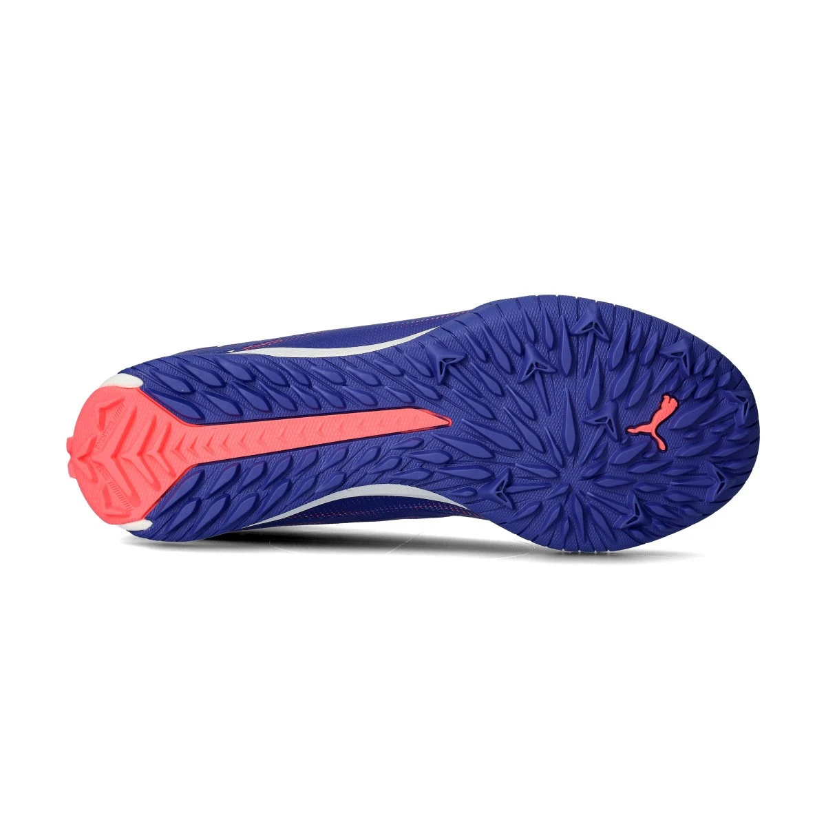 Scarpe da calcio per bambini Puma Ultra 5 Match+ LL Turf+ Mid. Sintetiche, da usare su campi in erba sintetica o moquette. Di gamma bassa e disponibili nella colorazione Lapis Lazuli-White-Sunset Glow.