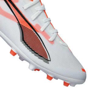 Scarpe da calcio per adulti Puma Ultra 5 Match+MG. Sintetiche, con lacci, da usare su campi in erba artificiale di prima generazione. Di bassa gamma e disponibili nella colorazione White-White-Glowing Red.