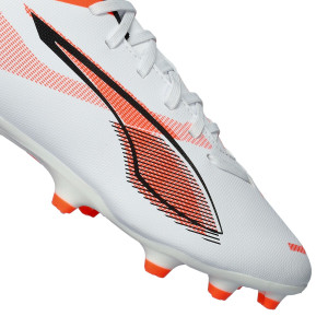 Scarpe da calcio per bambini Puma Ultra 5 Play FG/AG. Sintetiche da usare su campi in erba artificiale e naturale. Di gamma bassa e disponibili nella colorazione White-White-Glowing Red.