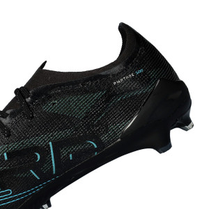 Scarpa da calcio Puma Ultra 5 Ultimate FG per adulti. In microfibra adatte a campi in erba naturale. Di alta gamma e disponibili nella colorazione Black-Silver-Fluo Green.