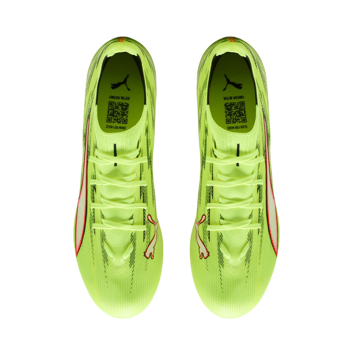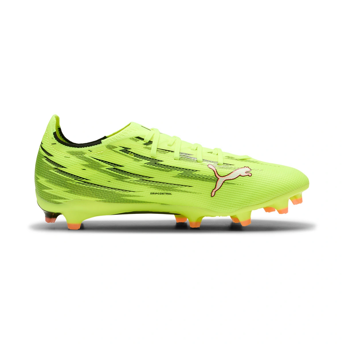 Scarpe da calcio Puma Ultra 6 Match. Sintetiche, da usare su campi in erba artificiale e naturale. Di gamma base, disponibili nella colorazione Yellow Alert-Puma Black-Puma Silver-Glowing R.