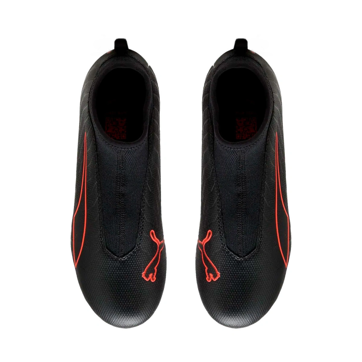 Scarpe da calcio per bambini Puma Ultra 6 Match+ LL FG/AG. Sintetiche, senza lacci, da usare su campi in erba naturale e artificiale. Di gamma base e disponibili nella colorazione Puma Black-Puma Red-Strong Gray.