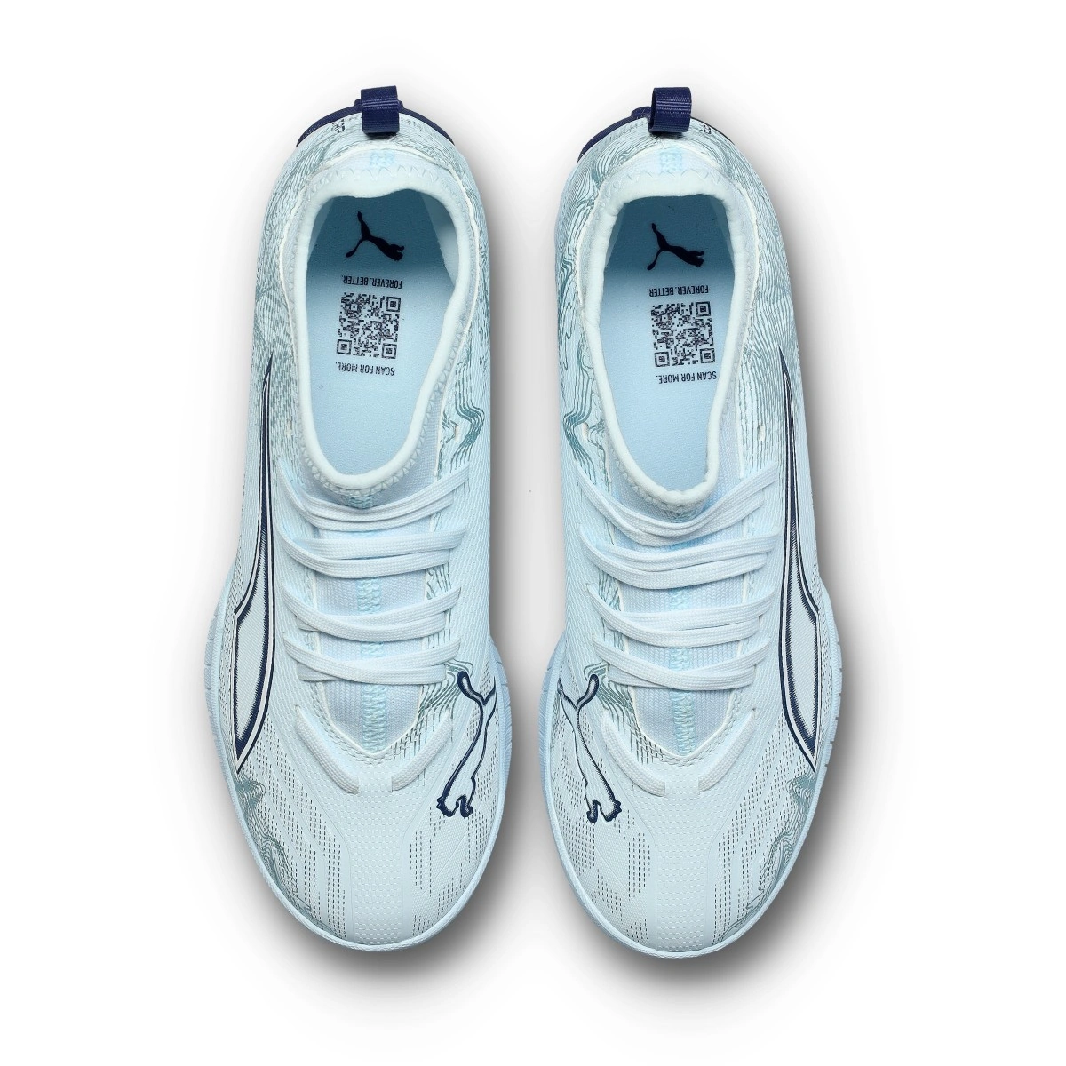Scarpe da calcio per bambini Puma Ultra 6 Match+ LL Turf  Mid. Sintetiche, da usare su campi in erba artificiale o moquette. Di gamma bassa e disponibili nella colorazione  Icy Blue-Blue Jewel.